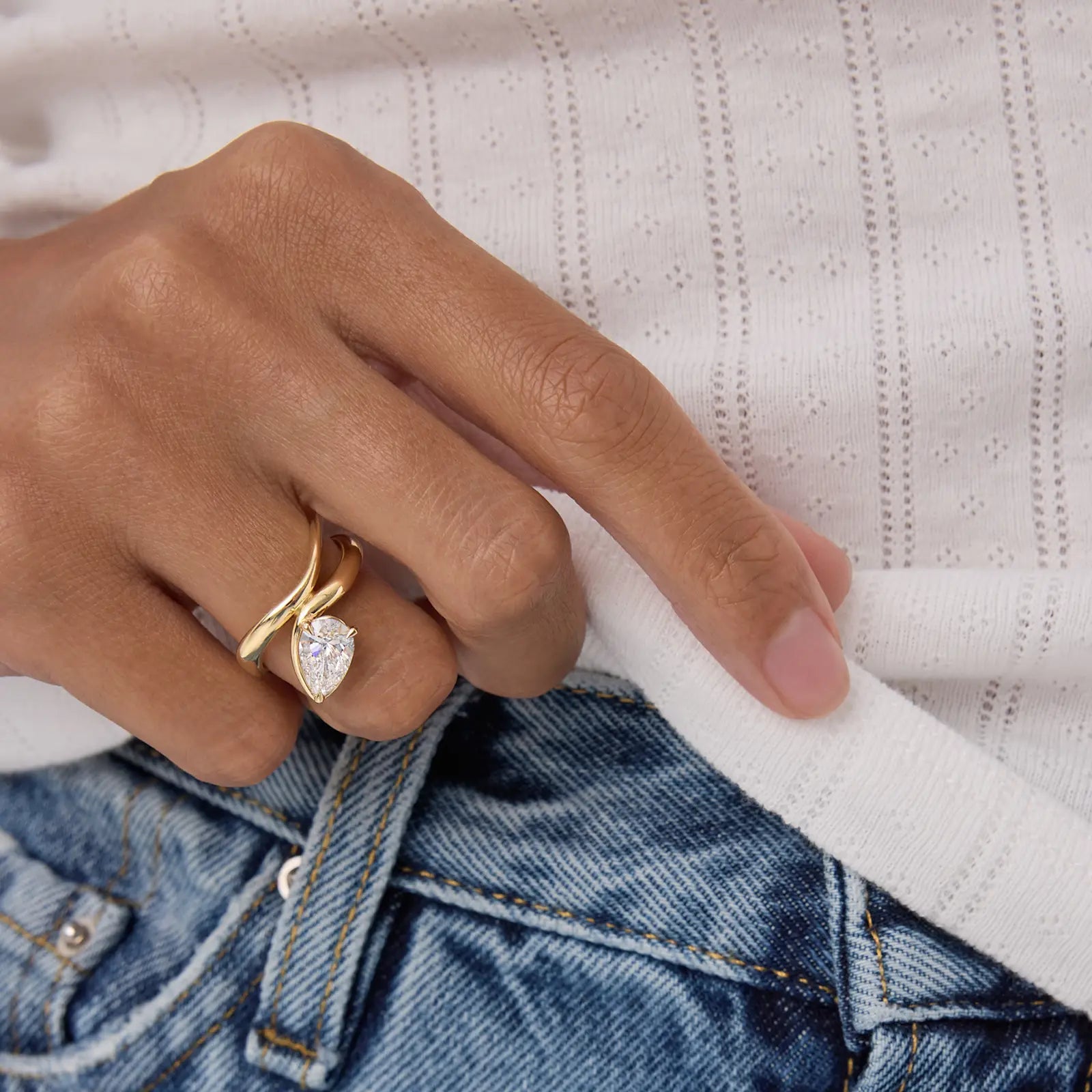 Timeless 2 CT Oval & Pear Cut Swirl Toi Eti Moi Setting Lab Grown Diamond Engagement Ring