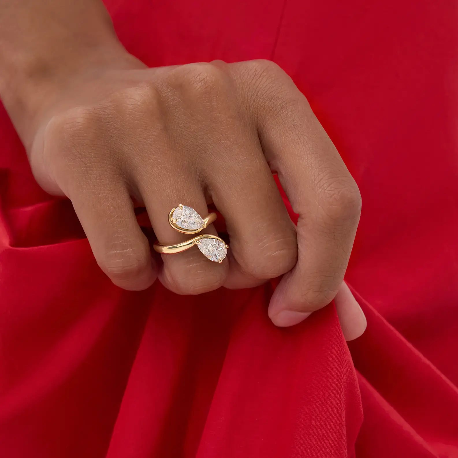Timeless 2.75 CT Radiant & Pear Cut Toi Eti Moi Setting Lab Grown Diamond Engagement Ring