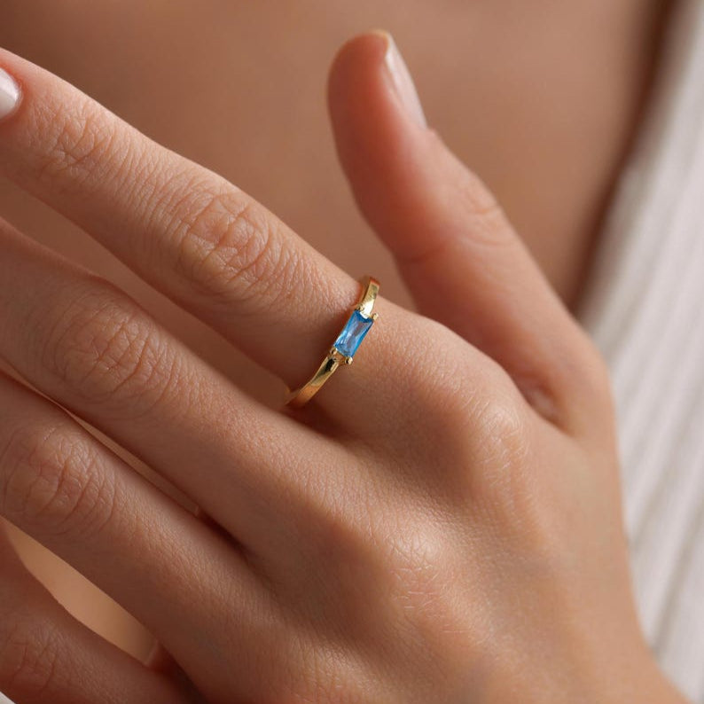 0.5 CT Baguette Solitaire Blue Topaz Gemstone Engagement Ring