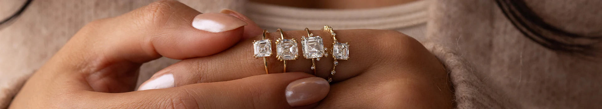 2 CT Asscher Cut Half Bezel & Solitaire Lab Grown Diamond Engagement Ring