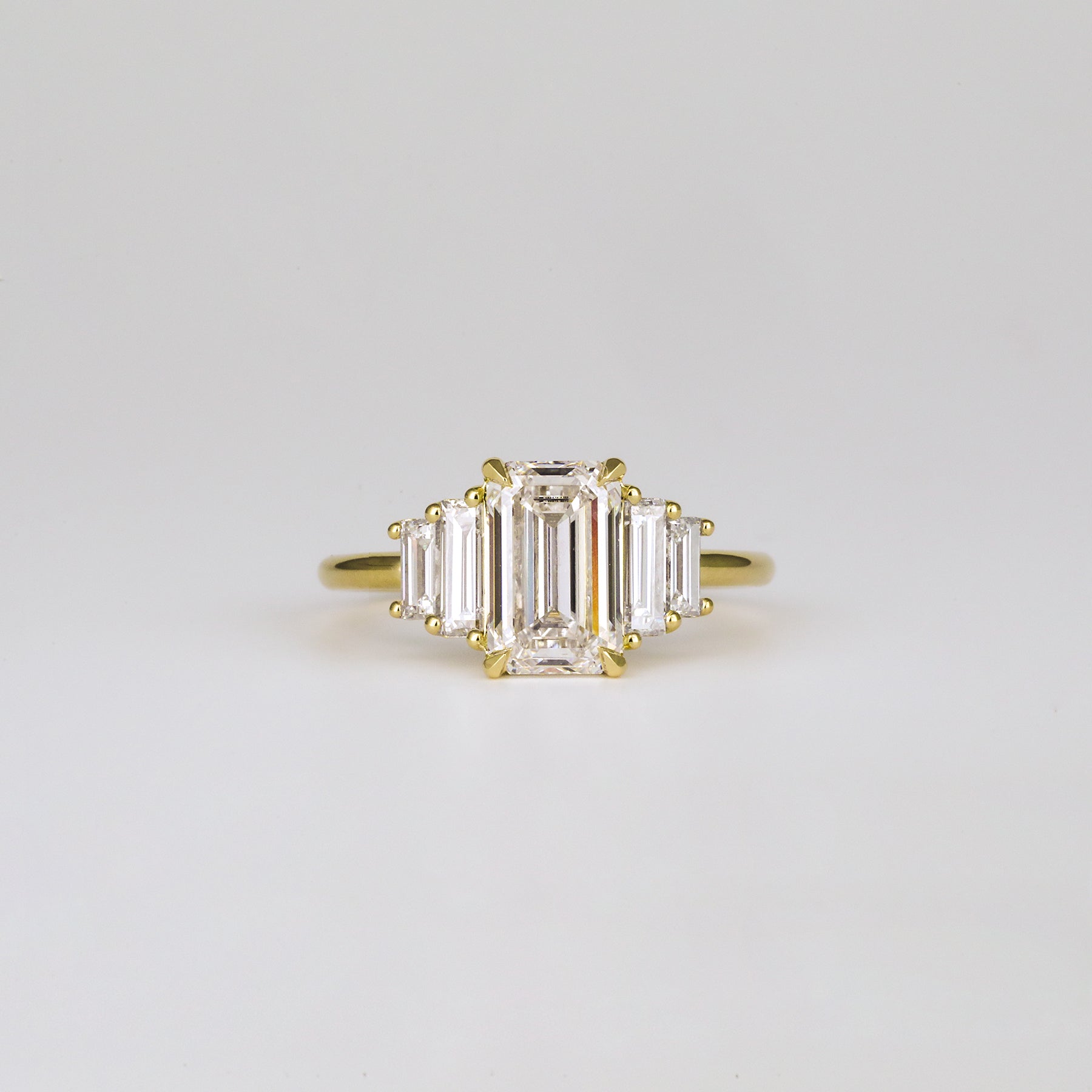 2.5 CT Emerald Cut Cluster Lab Grown Diamond Engagement Ring