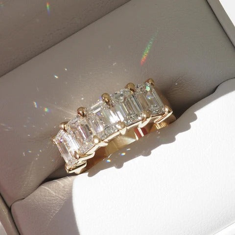 5 TCW Emerald Shaped Half Eternity Lab Grown Diamond Wedding Band