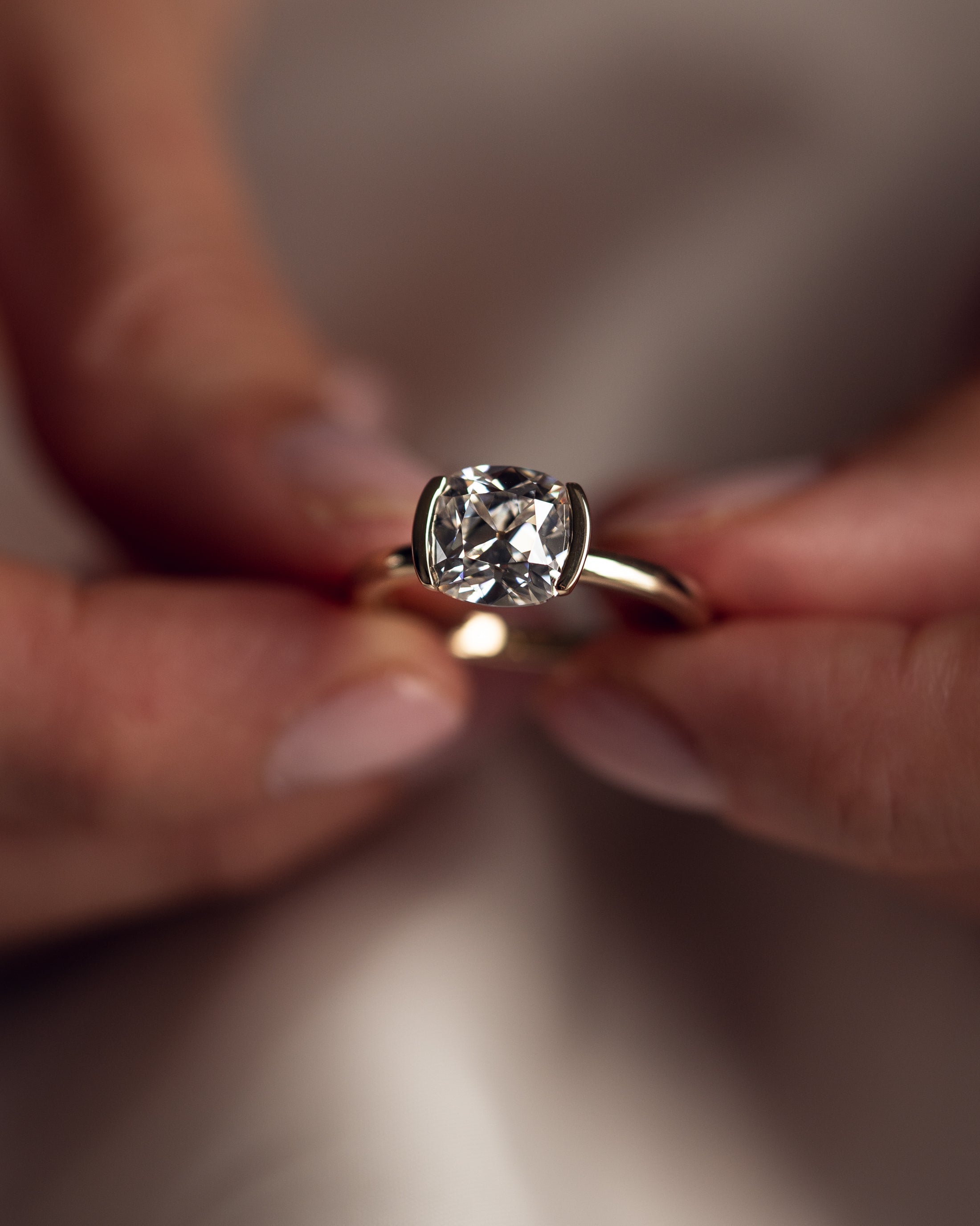 2.54 CT Cushion Half Bezel Solitaire Lab Grown Diamond Engagement Ring