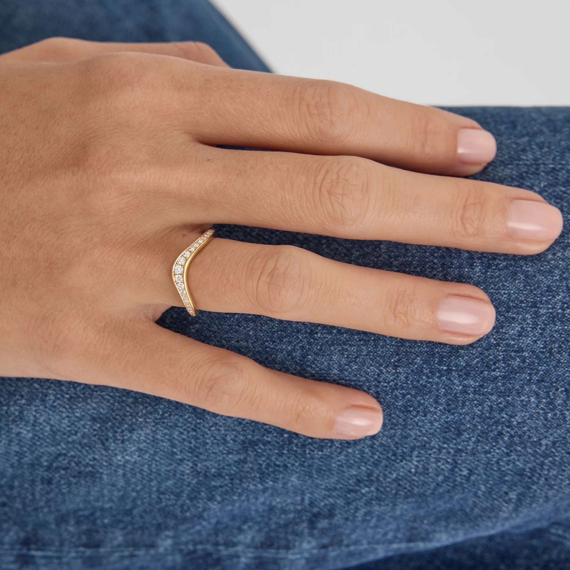 Timeless 0.35 TCW Round Stones Signet Curved Lab Grown Diamond Wedding Band