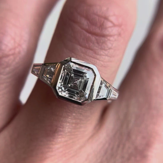 2.04 CT Asscher Cut Bezel & 5 Stones Lab Grown Diamond Engagement Ring