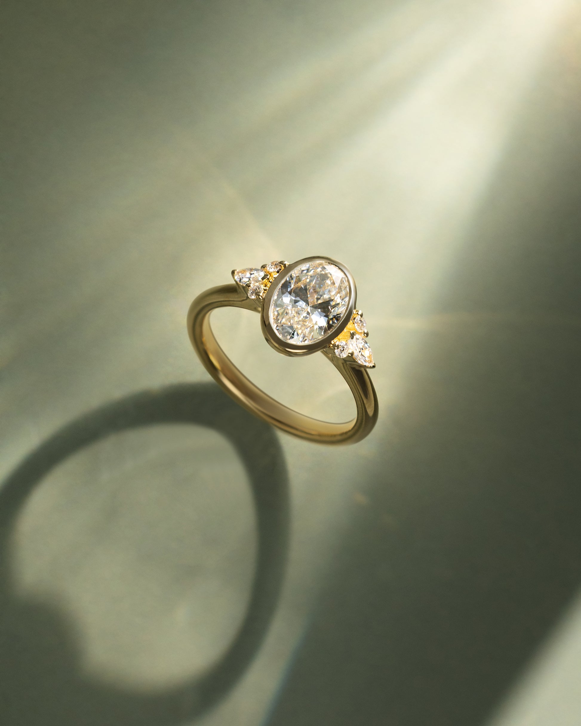 2 CT Oval Cut Cluster & Bezel Lab Grown Diamond Engagement Ring