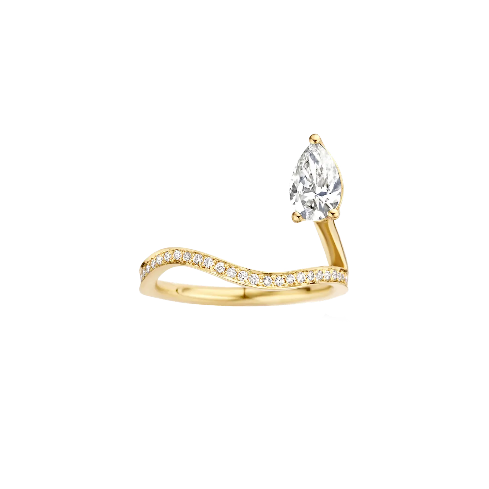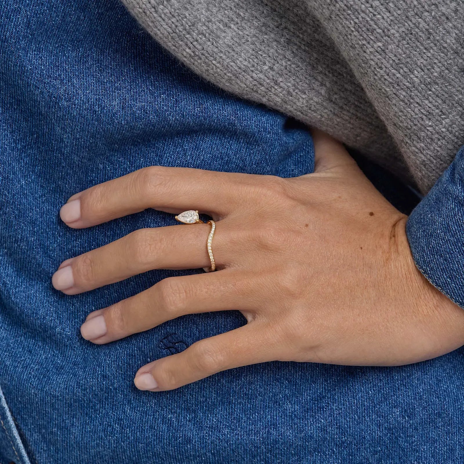 Timeless 0.75 CT Pear Cut Swirl Unique Pave Setting Lab Grown Diamond Engagement Ring