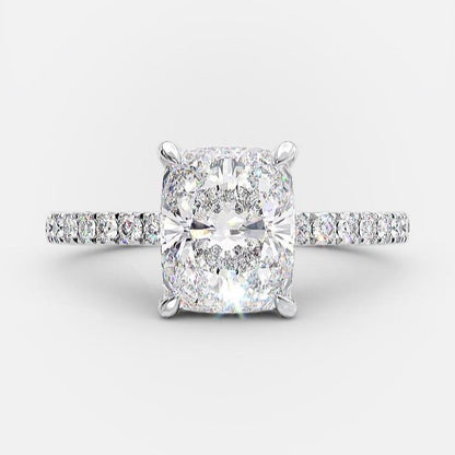 2.33 CT Cushion Hidden Halo & Pave Moissanite Engagement Ring