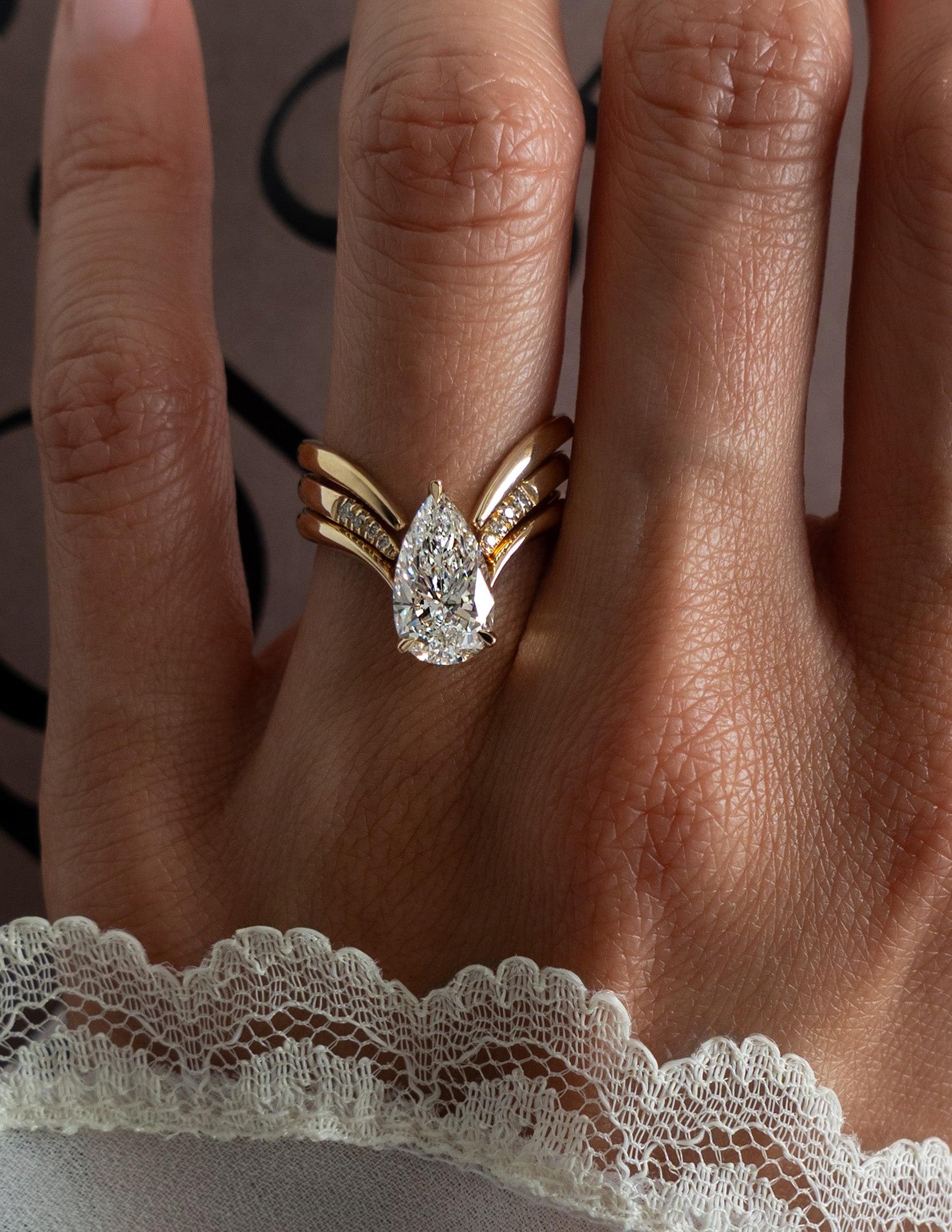 2 CT Pear Cut 3 Set Eve Classic & Pave Lab Grown Diamond Bridal Ring Set