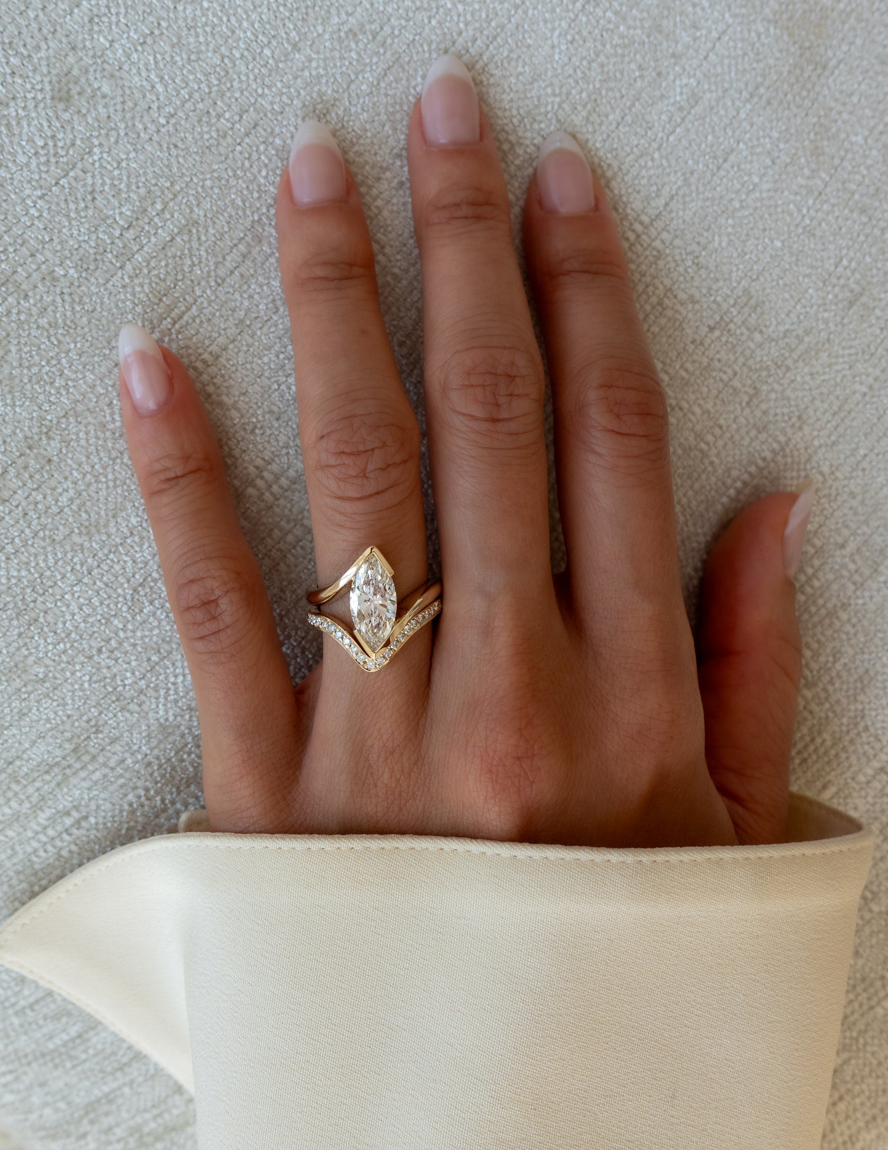 2 CT Marquise Lab Grown Engagement Ring with V Shaped Pave Design Stacking Band