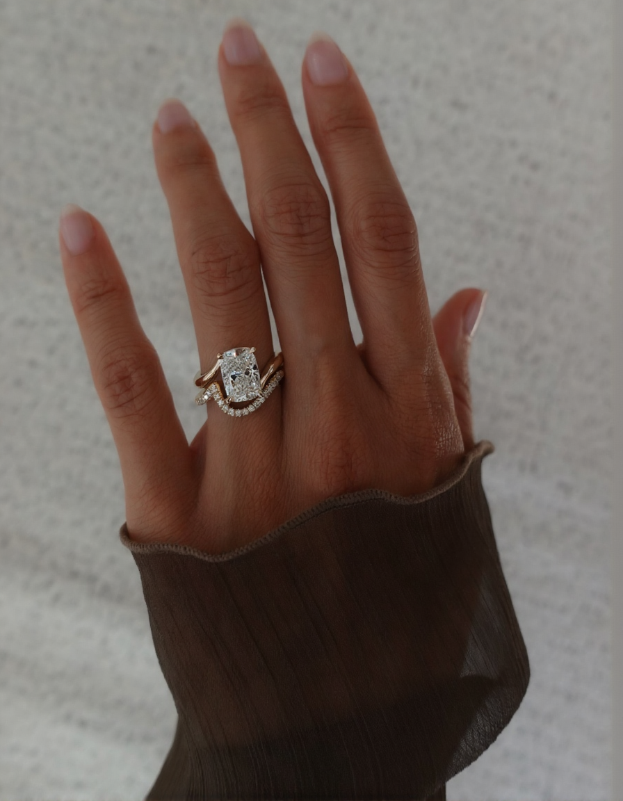 2.5 CT Elongated Cushion Cut Minimal Pave Stacking Lab Grown Diamond Bridal Ring Set