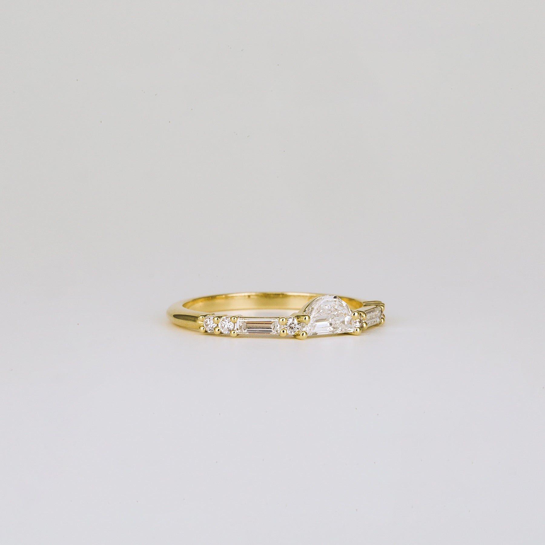 0.40 TCW Round, Baguette & Half Moon Stones Half Eternity Lab Grown Diamond Wedding Band