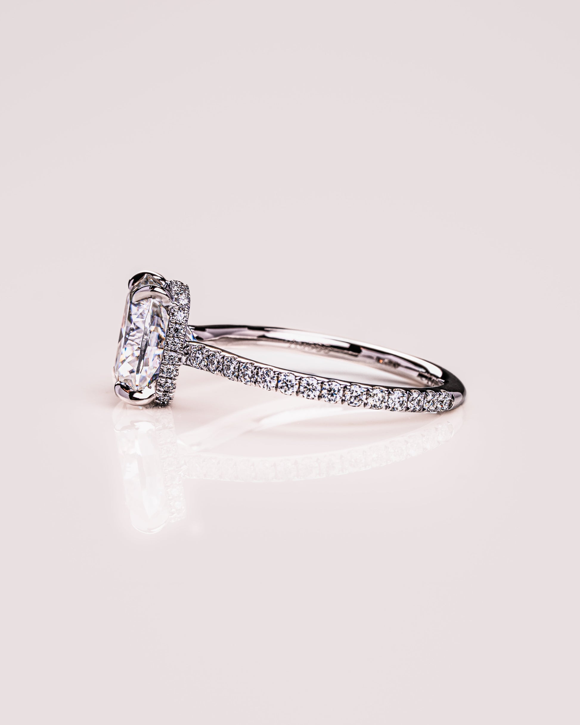 0.96 CT Cushion Lab Grown Diamond Engagement Ring With Hidden Halo & Pave Setting