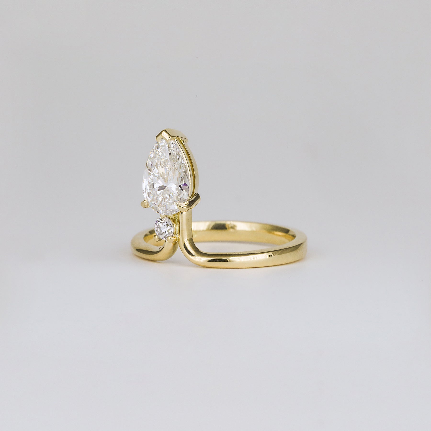 1.12 TCW Pear & Round Cut Lab Grown Diamond Engagement Ring