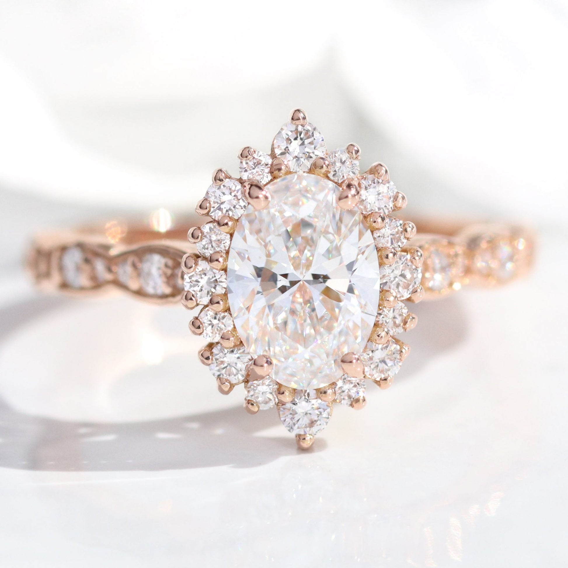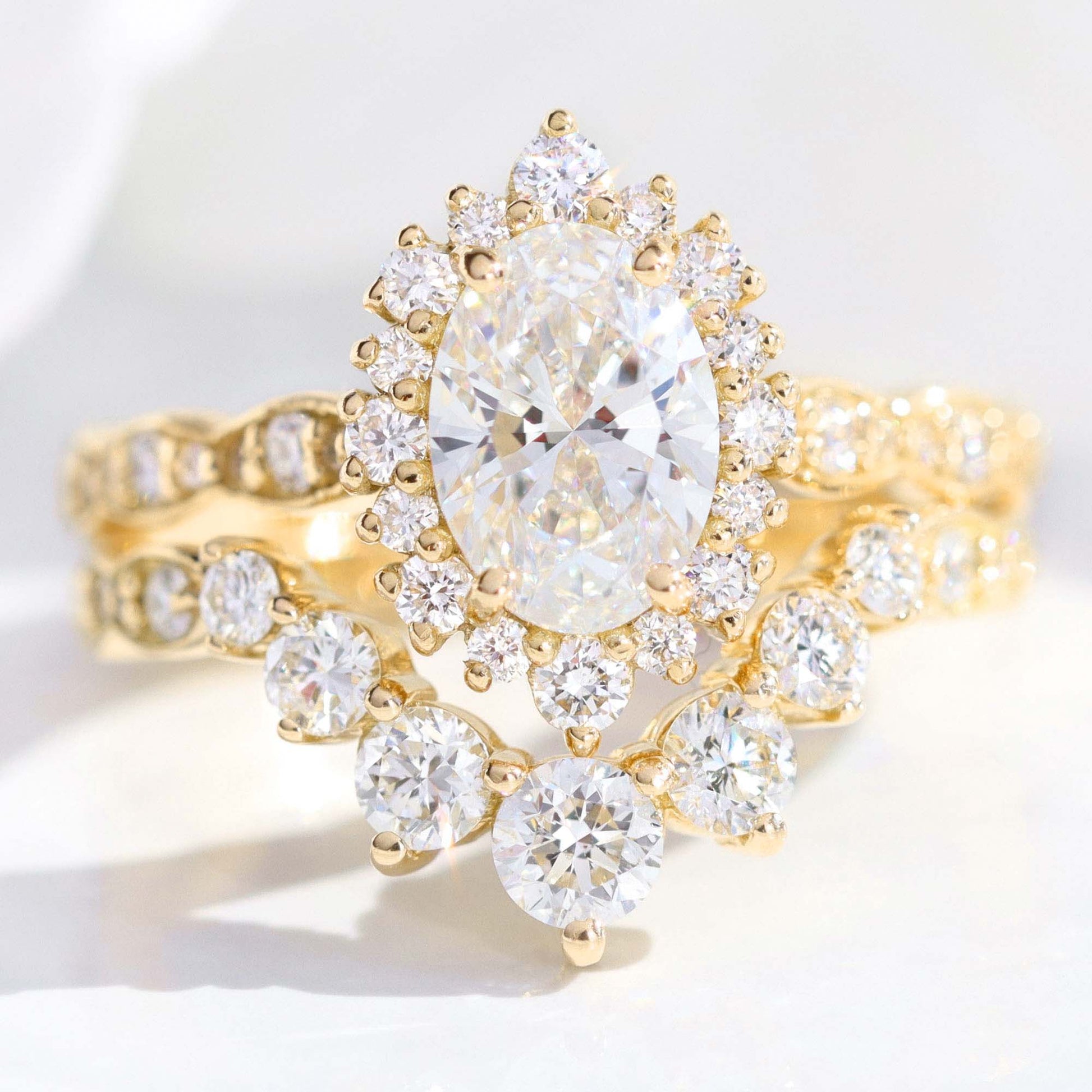 1.15 CT Oval Cut Halo & Pave Lab Grown Diamond Bridal Ring Set