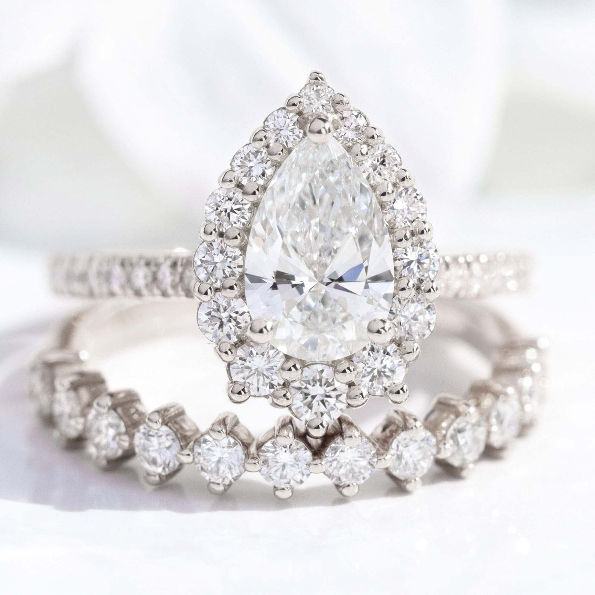 1.2 CT Pear Cut Halo & Pave Lab Grown Diamond Bridal Ring Set