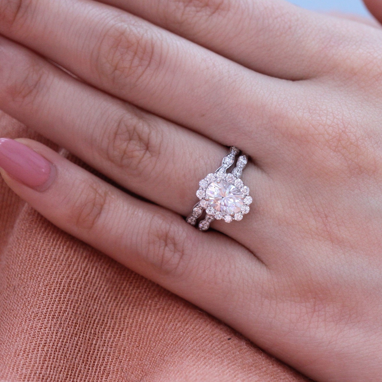 1.5 CT Oval Cut Vintage Style Lab Grown Diamond Bridal Ring Set