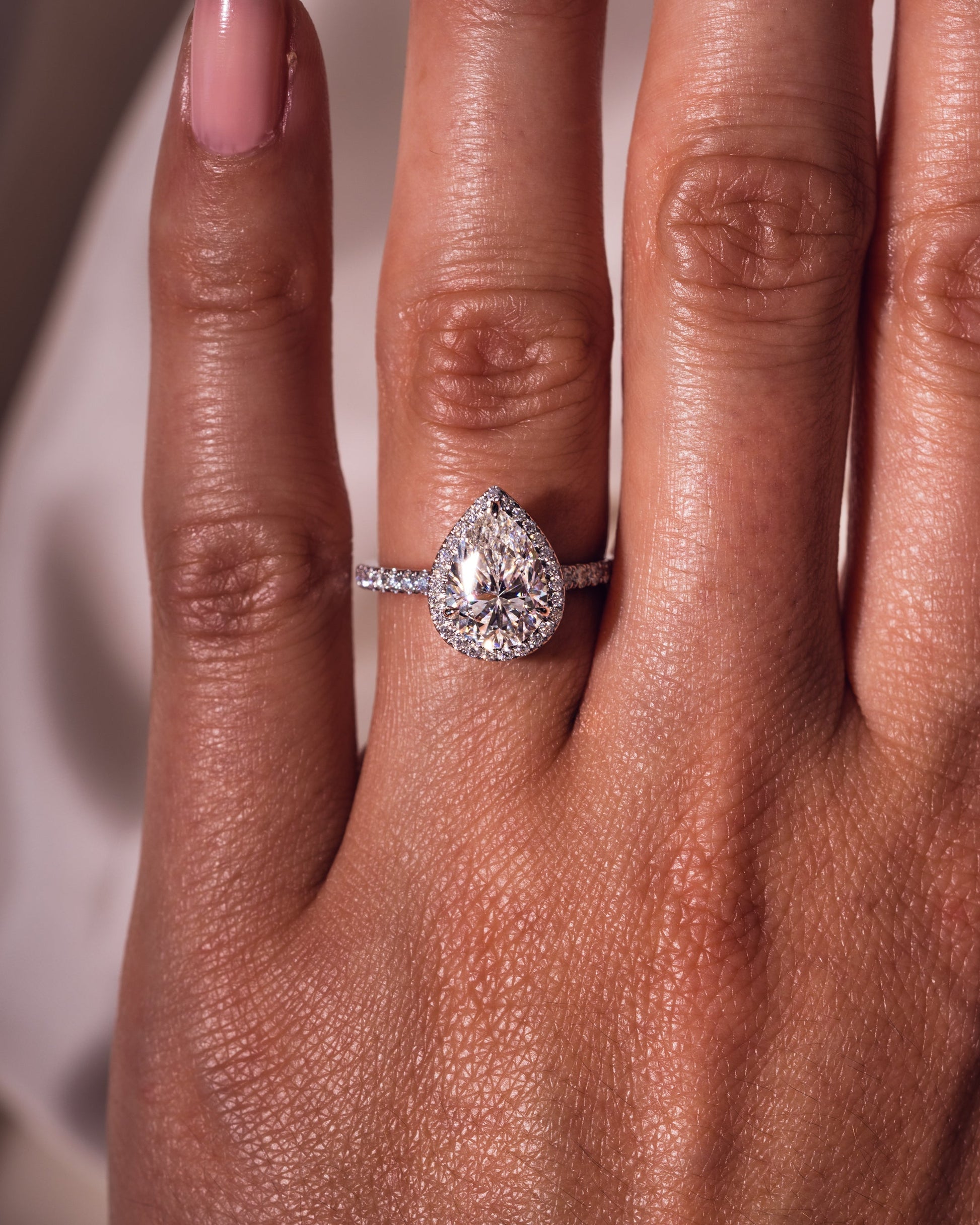 1.93 CT Pear Halo Pave Lab Grown Diamond Engagement Ring