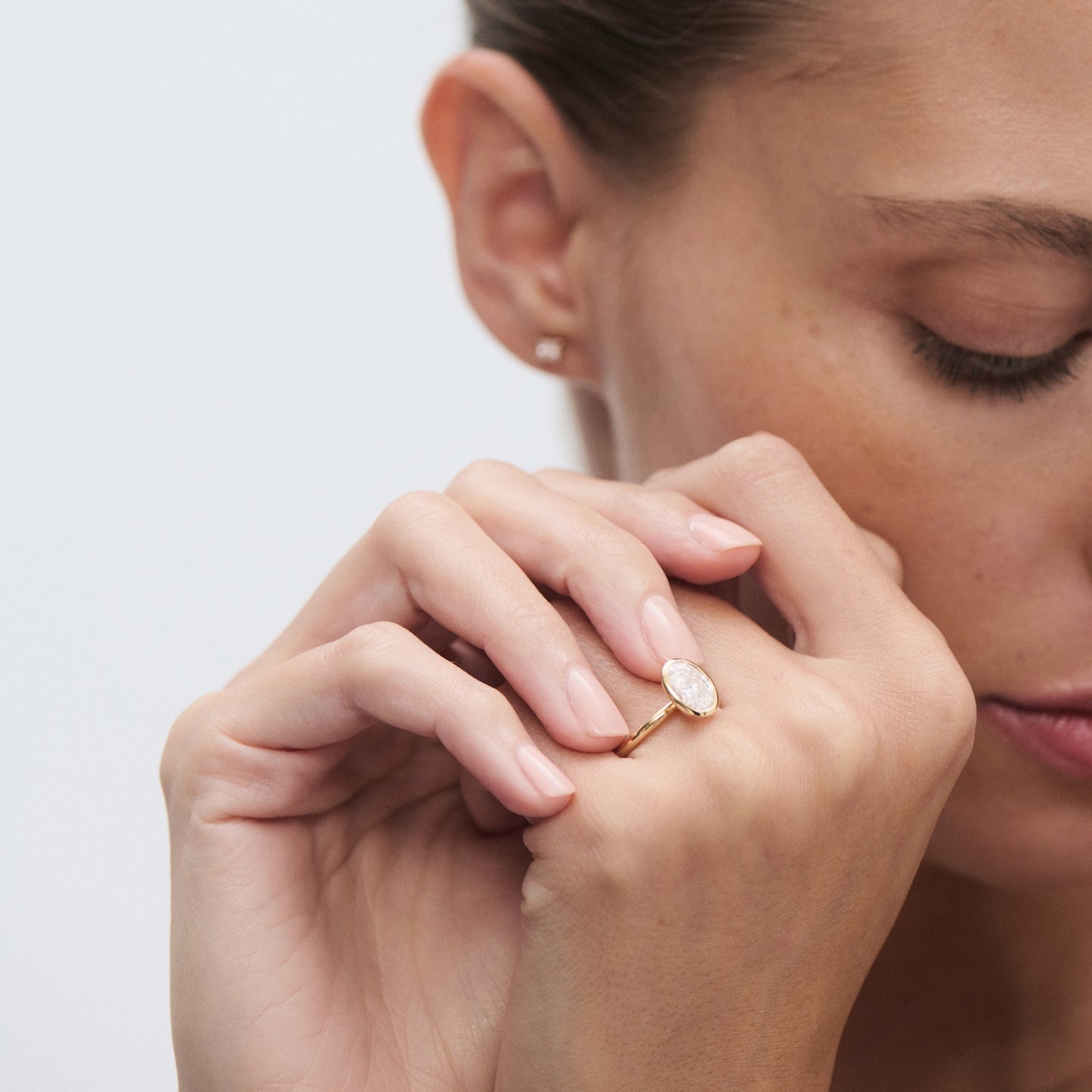 1 CT Oval Cut Bezel Lab Grown Diamond Engagement Ring