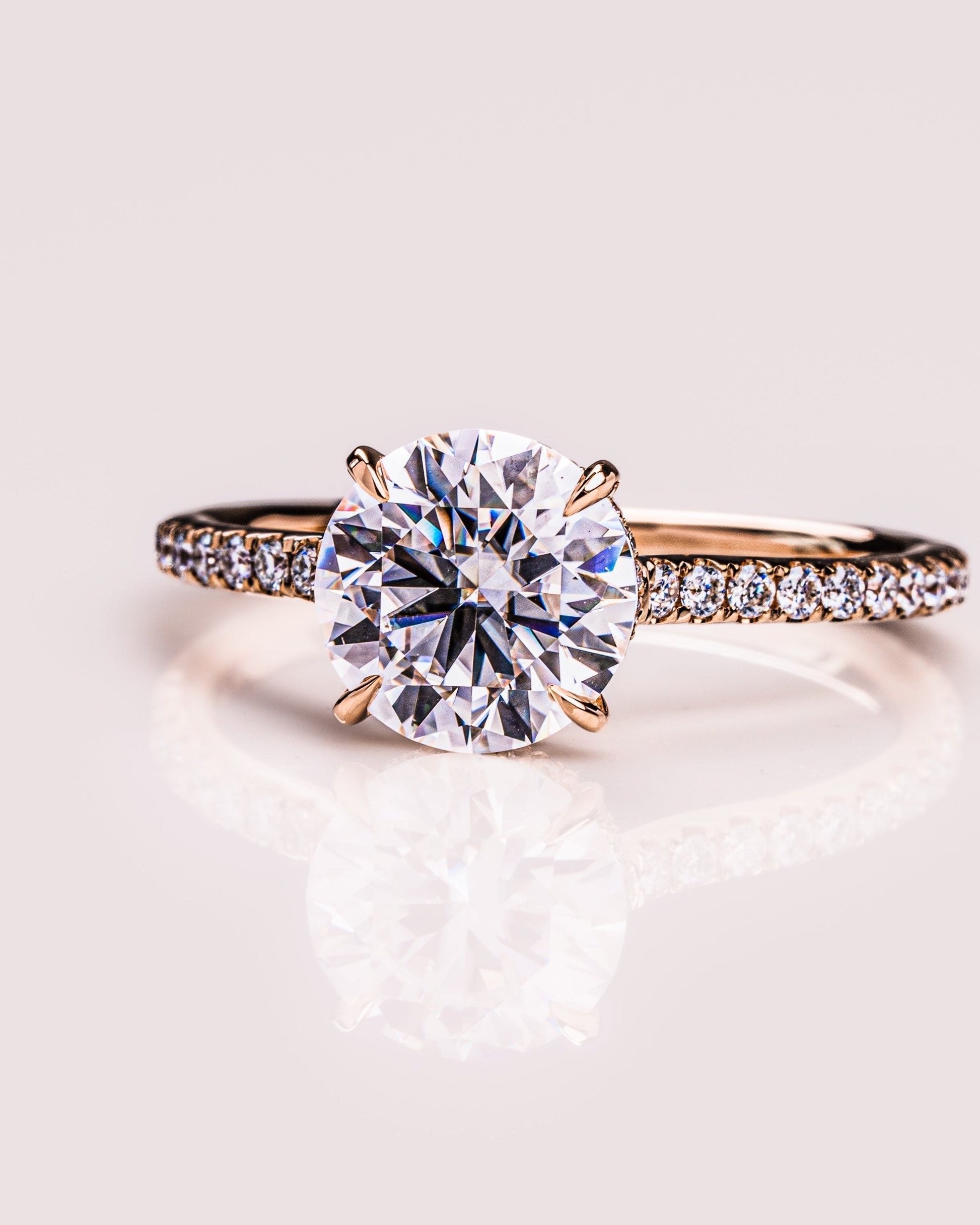 2.26 CT Round Cut Lab Grown Diamond Engagement Ring With Hidden Halo Setting