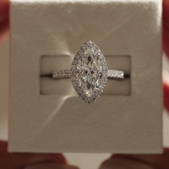 2 CT Marquise Cut Halo and Pave Lab Grown Diamond Engagement Ring