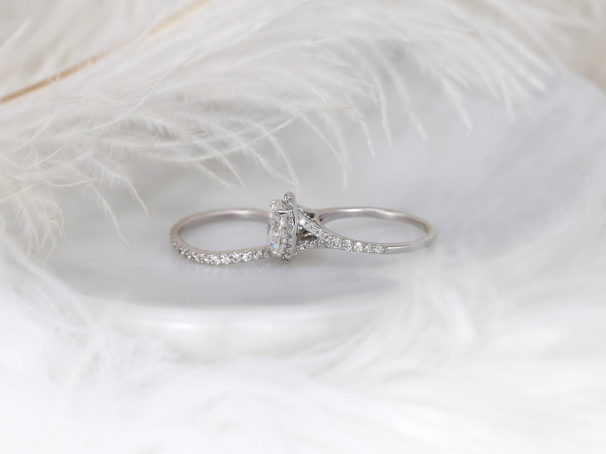 2 CT Oval Cut Halo & Pave Lab Grown Diamond Bridal Ring Set