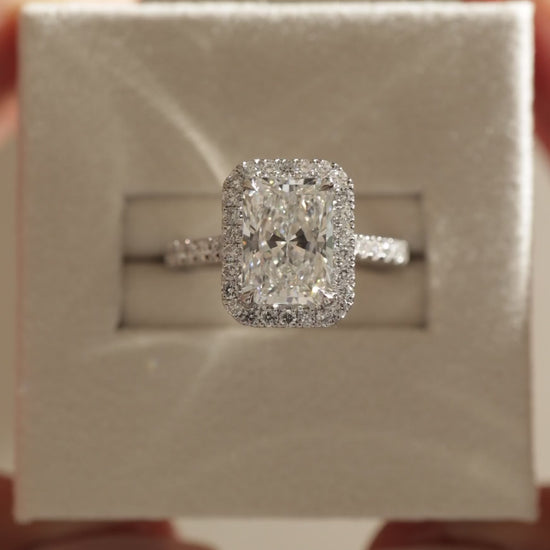 2 CT Radiant Cut Halo and Pave Lab Grown Diamond Engagement Ring