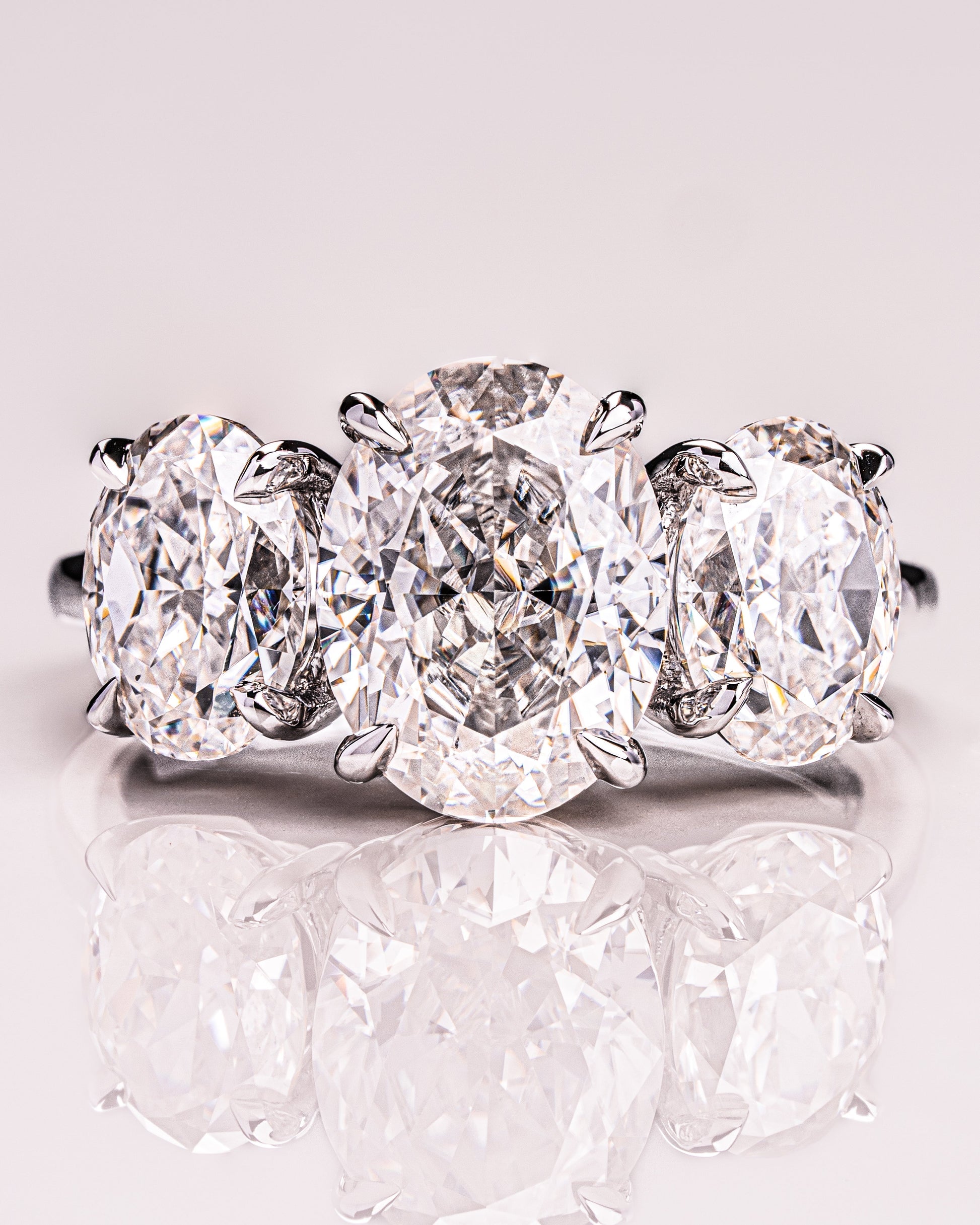 3.0 CT Oval Cut Three Stone Lab Grown Diamond Engagement Ring