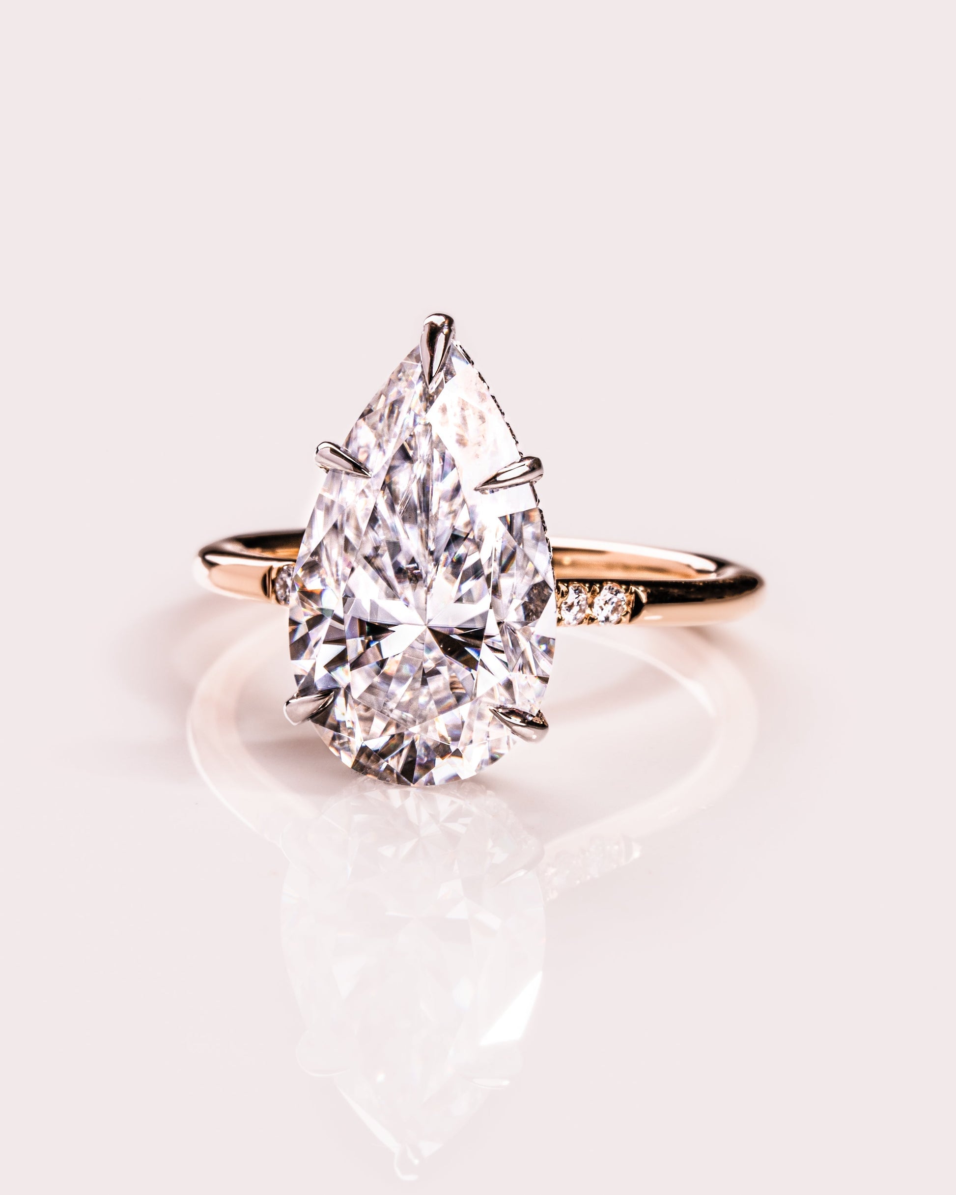 ✦ The Ring Shown in the Picture Holds a Beautiful 3.09 CT Pear Cut Lab Grown Diamond.