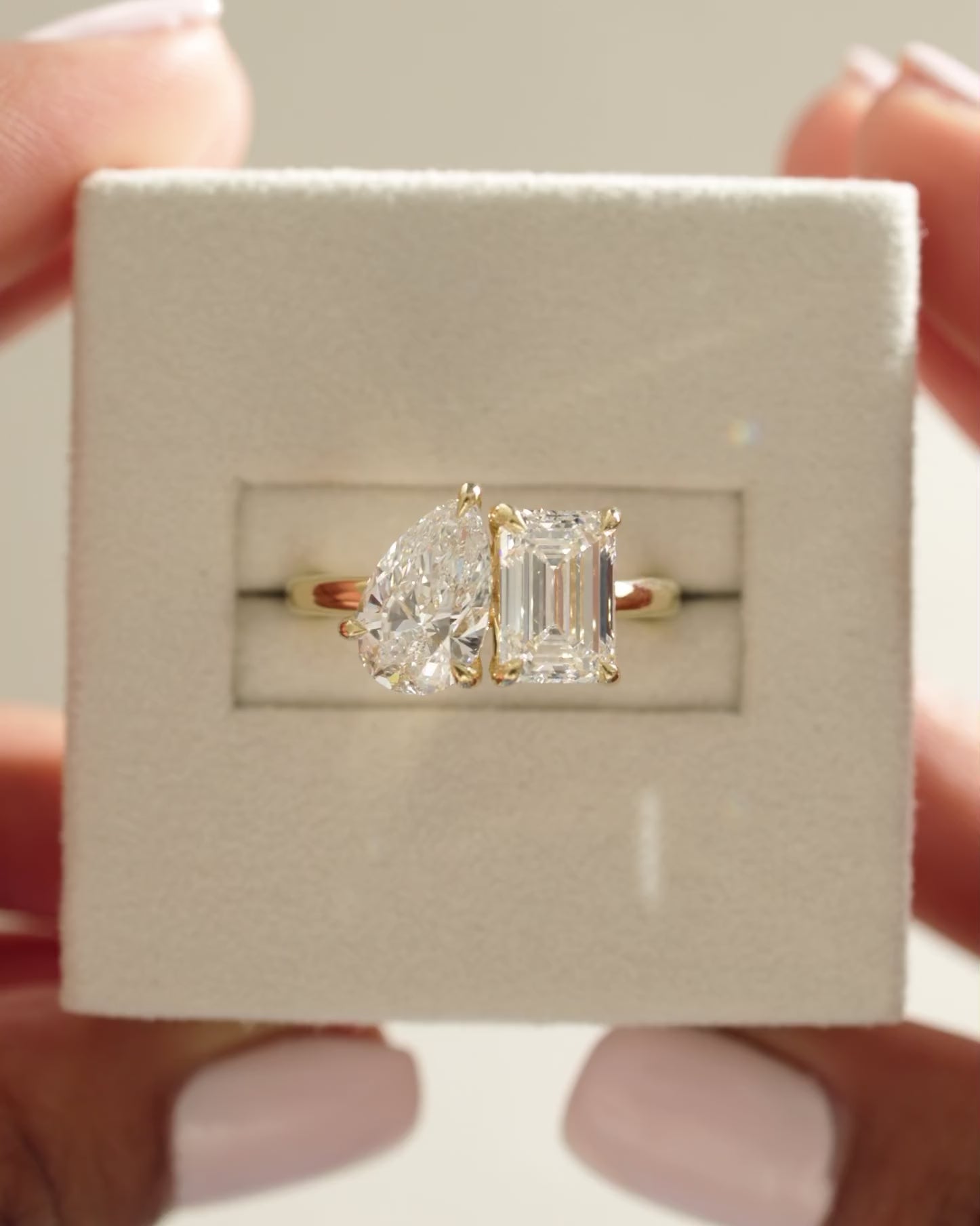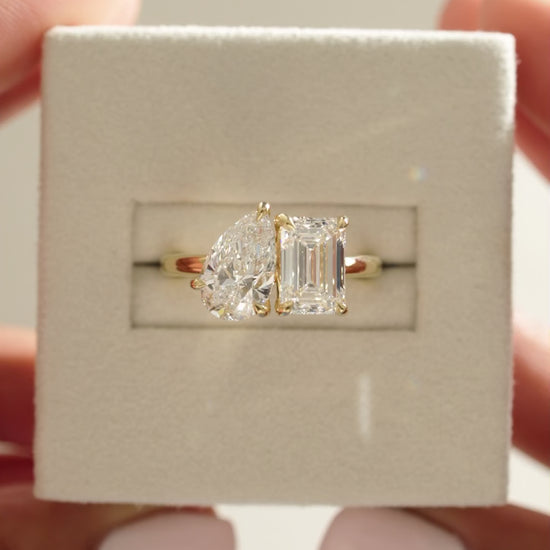 3.3 CT Emerald & Pear Cut Toi Et Moi Lab Grown Diamond Engagement Ring