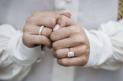✦ The Ring Shown in the Picture Holds a Beautiful 3.50 CT Emerald Cut Moissanite.