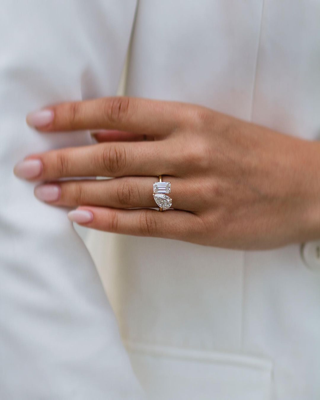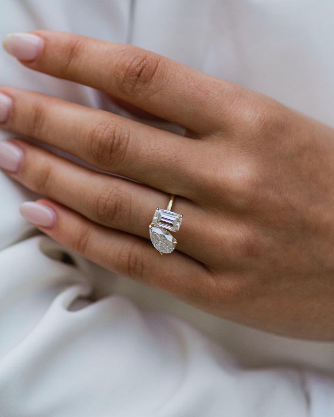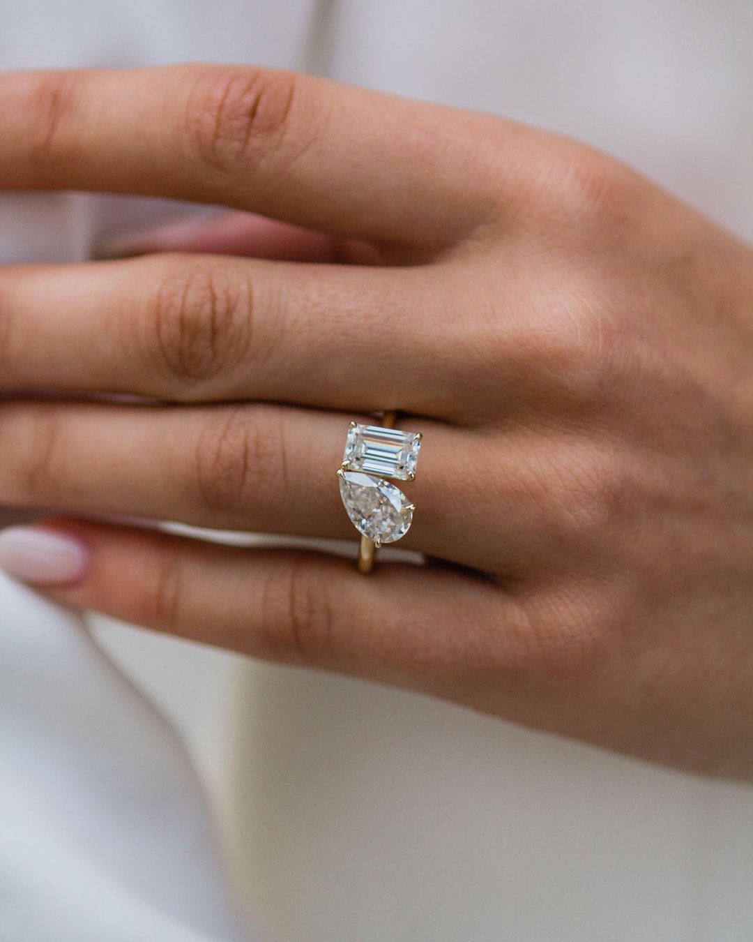 ✦ The Ring Shown in the Picture Holds a Beautiful 4.25CT Pear & Emerald Cut Moissanite.