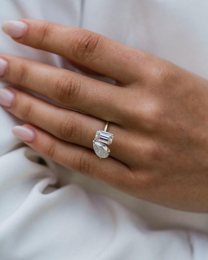 4.25 CT Pear & Emerald Toi Et Moi Moissanite Engagement Ring