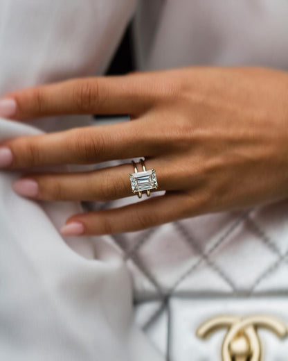 ✦ The Ring Shown in the Picture Holds a Beautiful 5.9 CT Emerald Cut Moissanite.