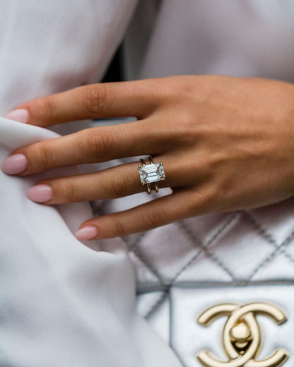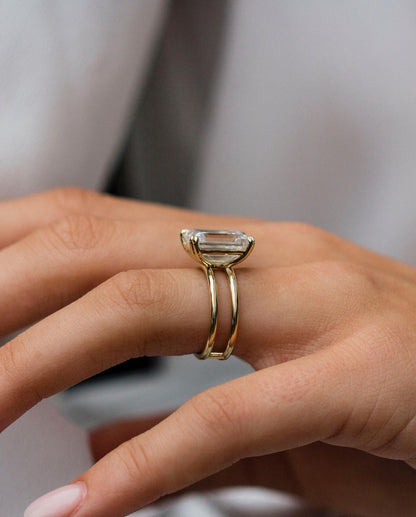 5.9 CT Emerald Double Band Solitaire Moissanite Engagement Ring