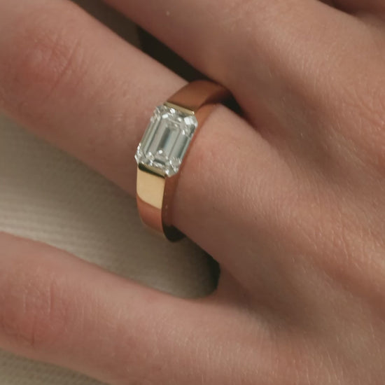 1 CT Emerald Cut East-West Solitaire Setting Lab Grown Diamond Engagement Ring