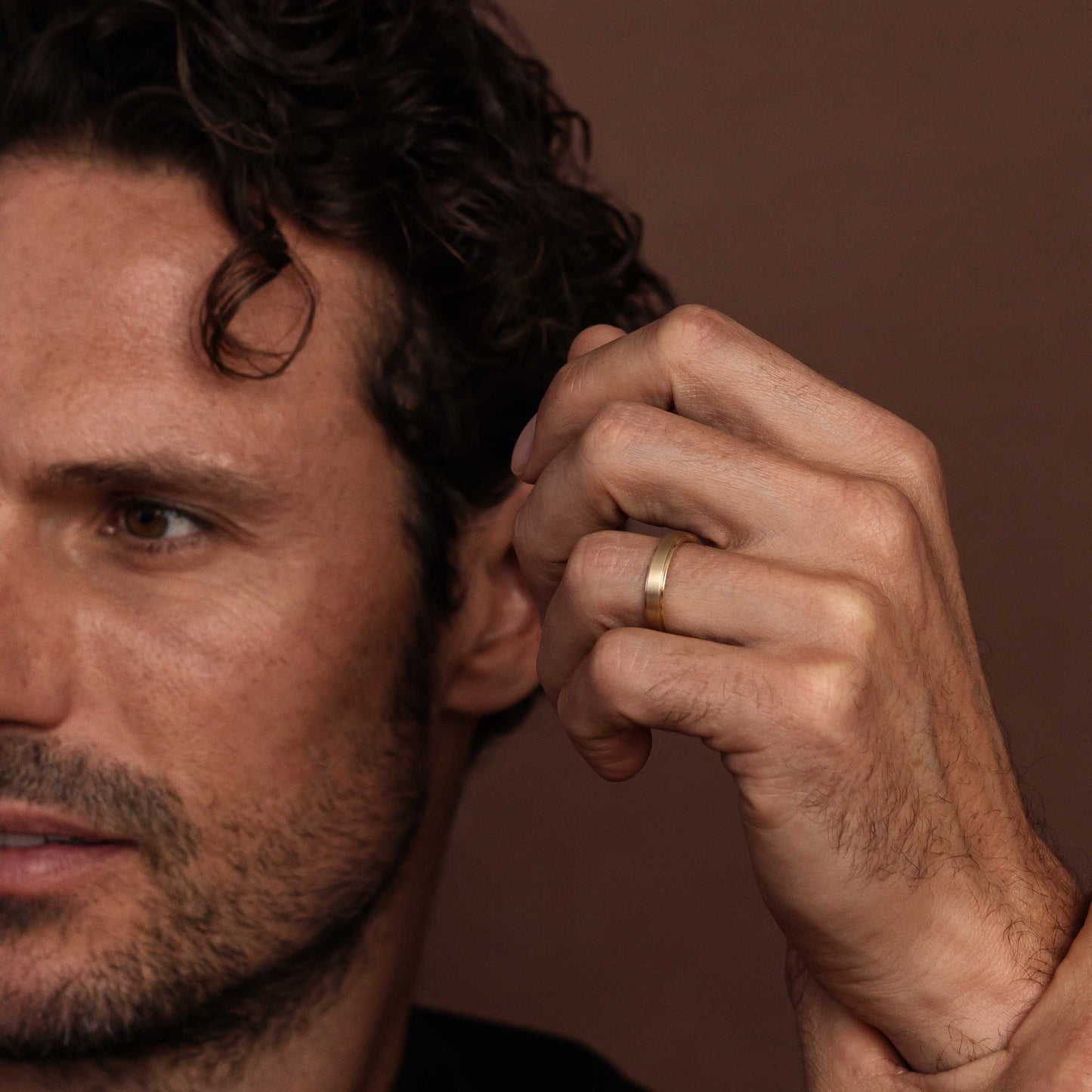 Flat Bevelled Edge Brushed Men's Gold Wedding Band