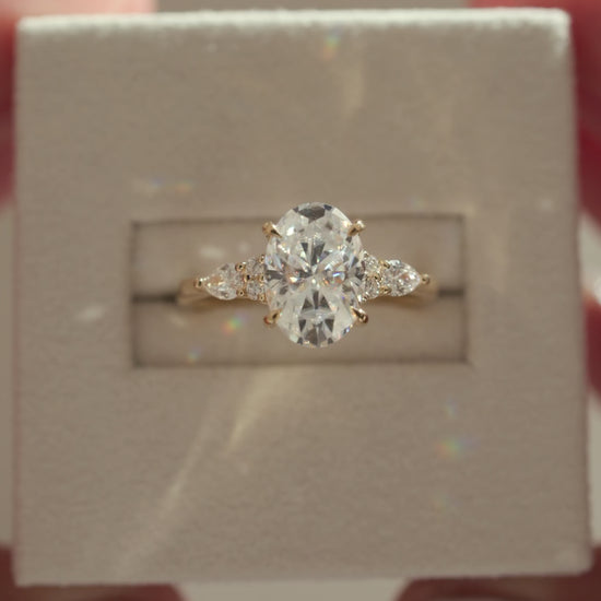 2 CT Oval Cut Cluster Lab Grown Diamond Engagement Ring