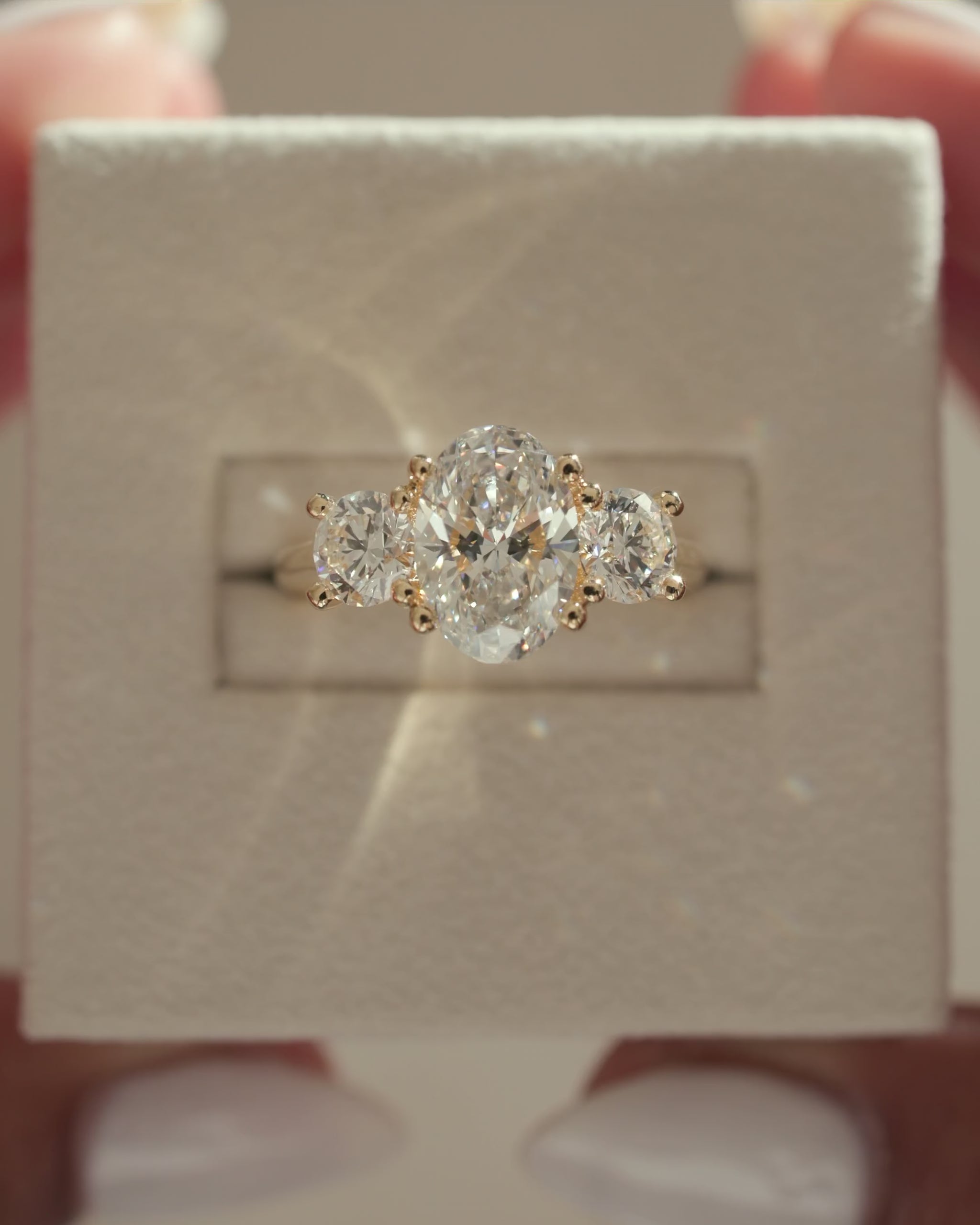 2 CT Oval Cut Three Stone Lab Grown Diamond Engagement Ring
