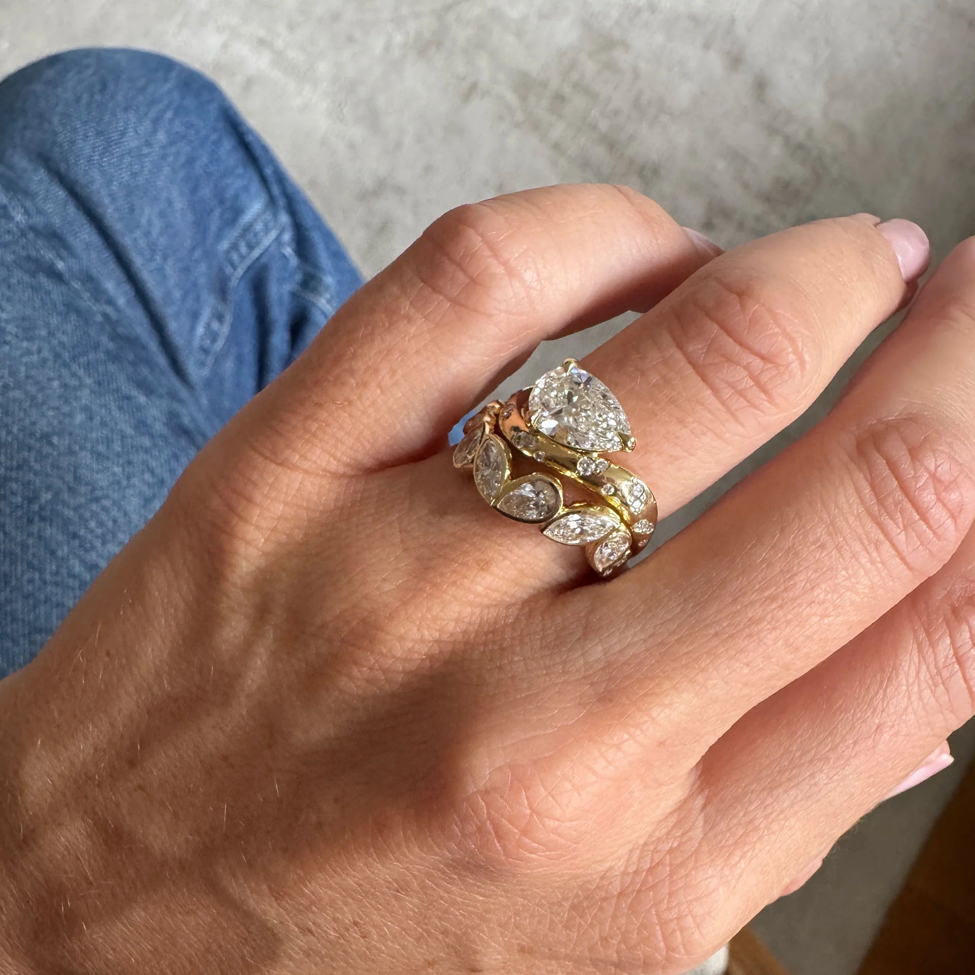 Timeless 0.6 TCW Pear Stones Bezel Swirl Lab Grown Diamond Wedding Band