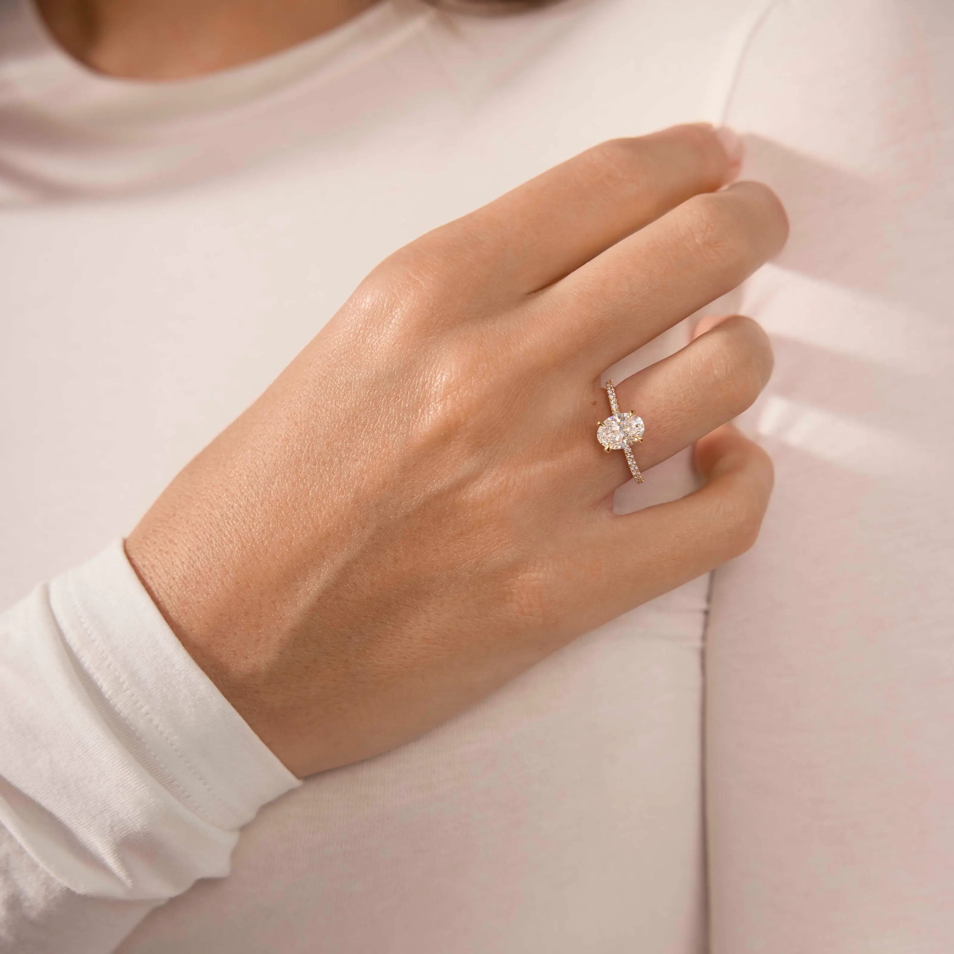 Timeless 1.2 CT Oval Cut Pave Styled Setting Lab Grown Diamond Engagement Ring